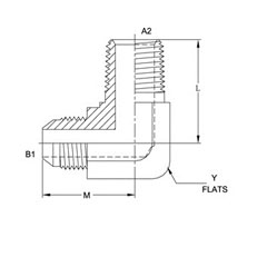 Product ID | Description | TUBE O.D. | B1 SAE 37 | A2 NPTF | B1 DRILL | A2 DRILL | M LGTH | L LGTH | Y FLATS |