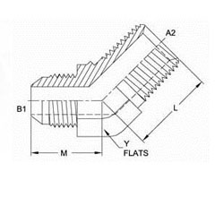 Product ID | Description | TUBE O.D. | B1 SAE 37 | A2 NPTF | B1 DRILL | A2 DRILL | M LGTH | L LGTH | Y FLATS |